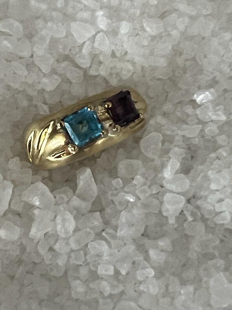 Materiais: Peça confeccionada em latão com uma camada de esmalte para evitar oxidação. Pedras: Ametista e Topázio Swiss.