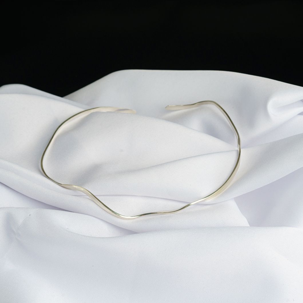 Materiais: Peça confeccionada em prata 950; acabamento com textura de lima na parte externa e polida na parte interna da peça.
