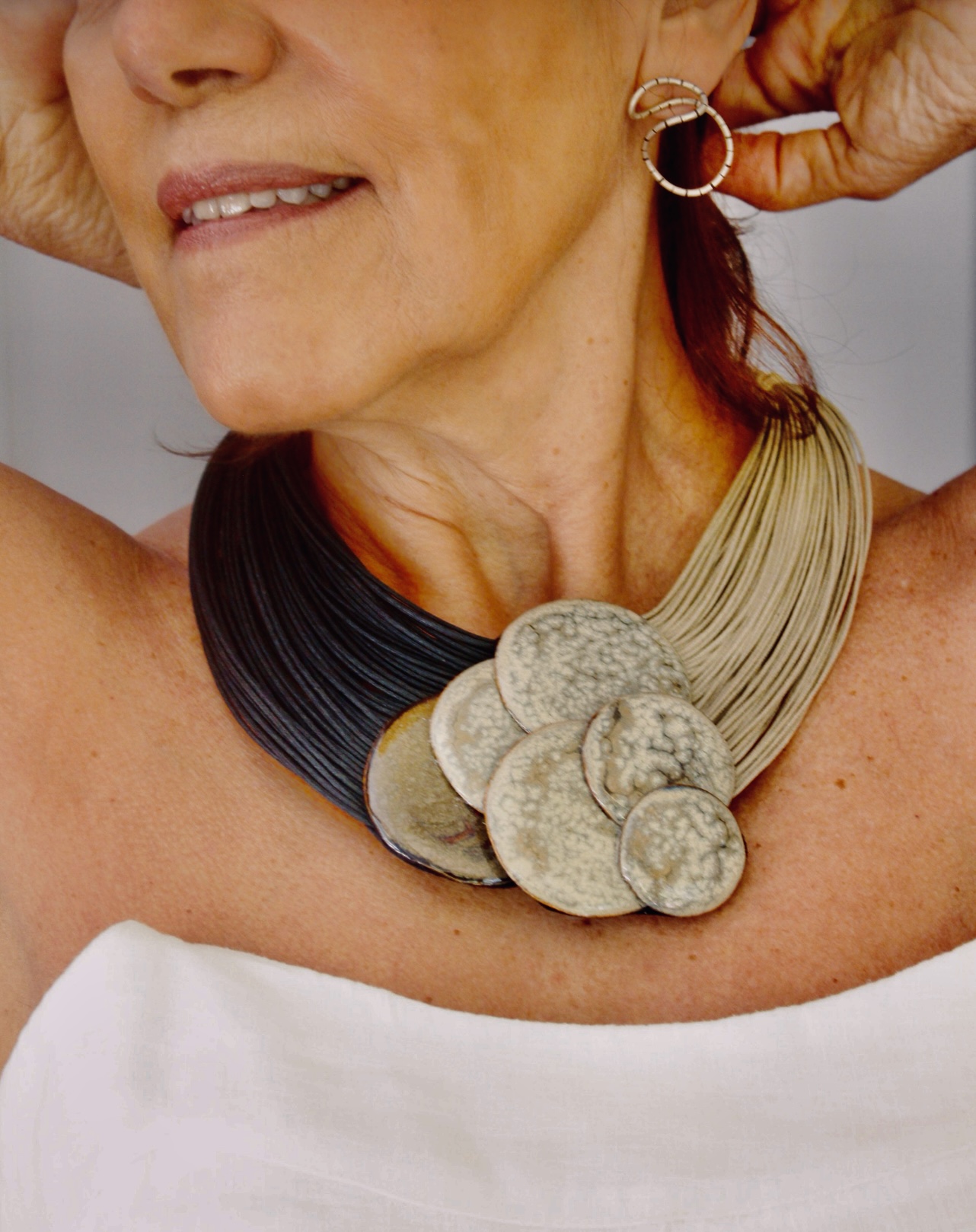 A coleção de colares em cerâmica é uma experiência multicultural de Rosaly Rezende, designer de acessórios femininos e peças decorativas. O resultado do olhar aguçado da artista que absorve a ousadia das ruas ao redor do mundo para imprimir em suas peças uma explosão de cores e formas. Materiais não nobres são trabalhados e combinados com sofisticação em peças artesanais e únicas. Força e personalidade definem a arte contemporânea de Rosaly Rezende. Permita-se!