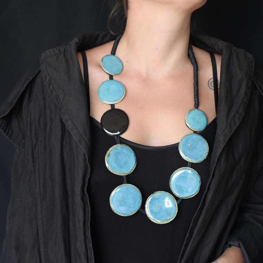 A coleção de colares em cerâmica é uma experiência multicultural de Rosaly Rezende, designer de acessórios femininos e peças decorativas. O resultado do olhar aguçado da artista que absorve a ousadia das ruas ao redor do mundo para imprimir em suas peças uma explosão de cores e formas. Materiais não nobres são trabalhados e combinados com sofisticação em peças artesanais e únicas. Força e personalidade definem a arte contemporânea de Rosaly Rezende. Permita-se!