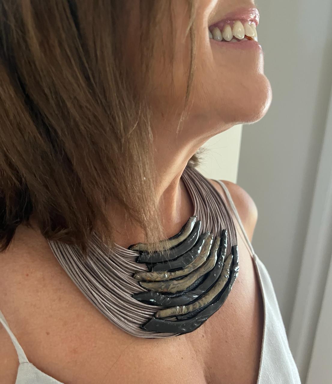 A coleção de colares em cerâmica é uma experiência multicultural de Rosaly Rezende, designer de acessórios femininos e peças decorativas. O resultado do olhar aguçado da artista que absorve a ousadia das ruas ao redor do mundo para imprimir em suas peças uma explosão de cores e formas. Materiais não nobres são trabalhados e combinados com sofisticação em peças artesanais e únicas. Força e personalidade definem a arte contemporânea de Rosaly Rezende. Permita-se!
