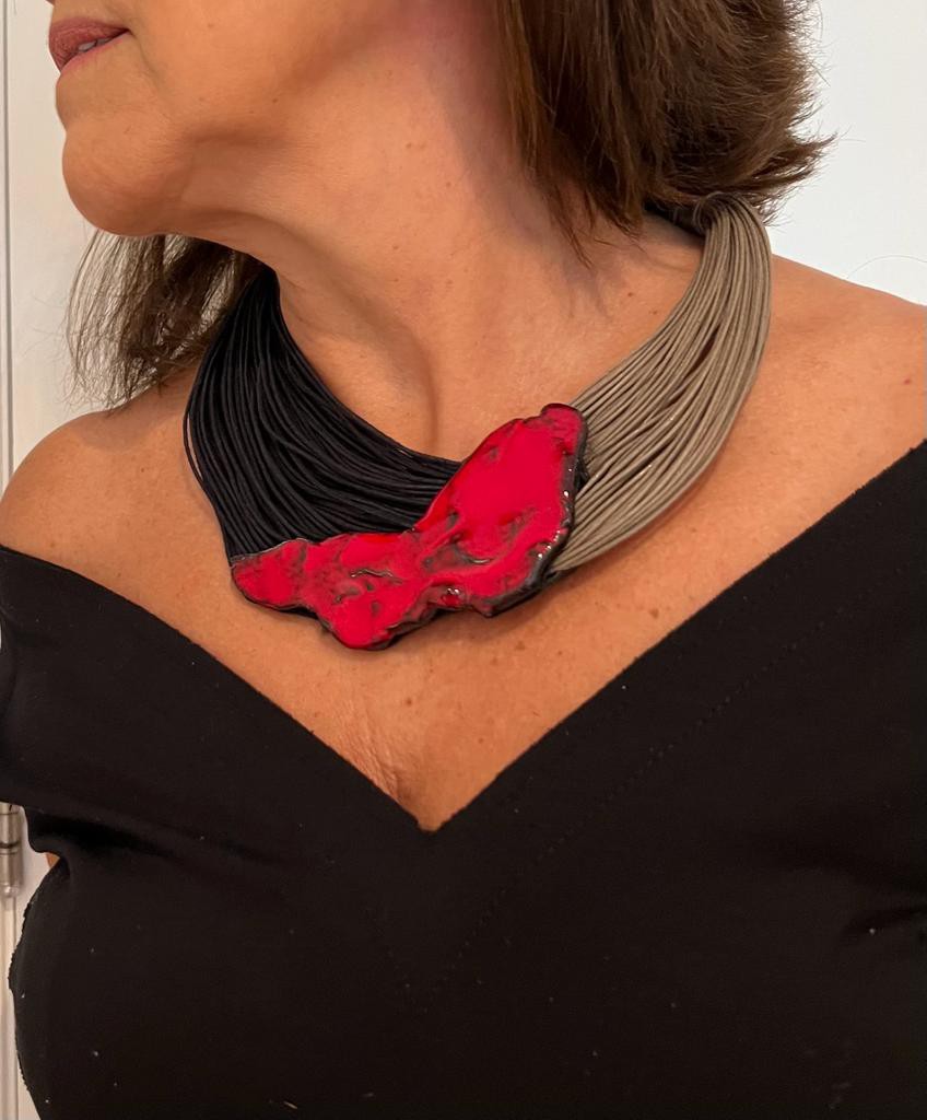A coleção de colares em cerâmica é uma experiência multicultural de Rosaly Rezende, designer de acessórios femininos e peças decorativas. O resultado do olhar aguçado da artista que absorve a ousadia das ruas ao redor do mundo para imprimir em suas peças uma explosão de cores e formas. Materiais não nobres são trabalhados e combinados com sofisticação em peças artesanais e únicas. Força e personalidade definem a arte contemporânea de Rosaly Rezende. Permita-se!