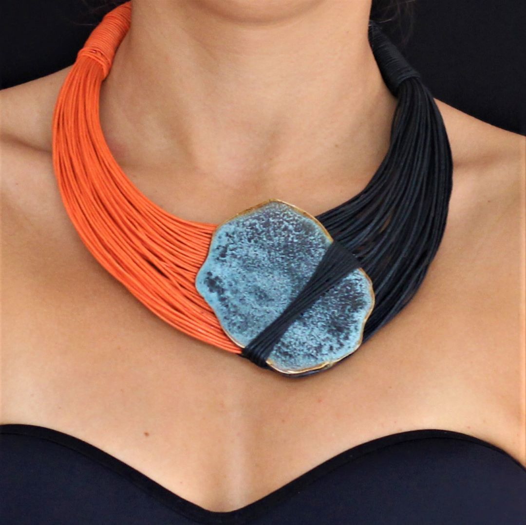A coleção de colares em cerâmica é uma experiência multicultural de Rosaly Rezende, designer de acessórios femininos e peças decorativas. O resultado do olhar aguçado da artista que absorve a ousadia das ruas ao redor do mundo para imprimir em suas peças uma explosão de cores e formas. Materiais não nobres são trabalhados e combinados com sofisticação em peças artesanais e únicas. Força e personalidade definem a arte contemporânea de Rosaly Rezende. Permita-se!