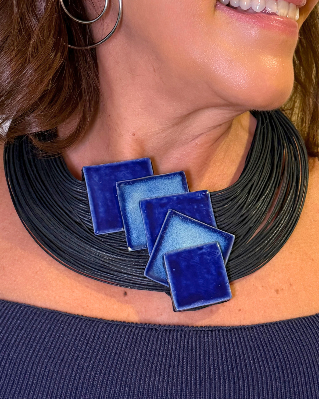 A coleção de colares em cerâmica é uma experiência multicultural de Rosaly Rezende, designer de acessórios femininos e peças decorativas. O resultado do olhar aguçado da artista que absorve a ousadia das ruas ao redor do mundo para imprimir em suas peças uma explosão de cores e formas. Materiais não nobres são trabalhados e combinados com sofisticação em peças artesanais e únicas. Força e personalidade definem a arte contemporânea de Rosaly Rezende. Permita-se!