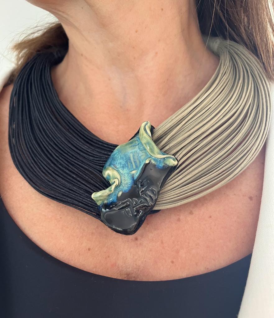 A coleção de colares em cerâmica é uma experiência multicultural de Rosaly Rezende, designer de acessórios femininos e peças decorativas. O resultado do olhar aguçado da artista que absorve a ousadia das ruas ao redor do mundo para imprimir em suas peças uma explosão de cores e formas. Materiais não nobres são trabalhados e combinados com sofisticação em peças artesanais e únicas. Força e personalidade definem a arte contemporânea de Rosaly Rezende. Permita-se!