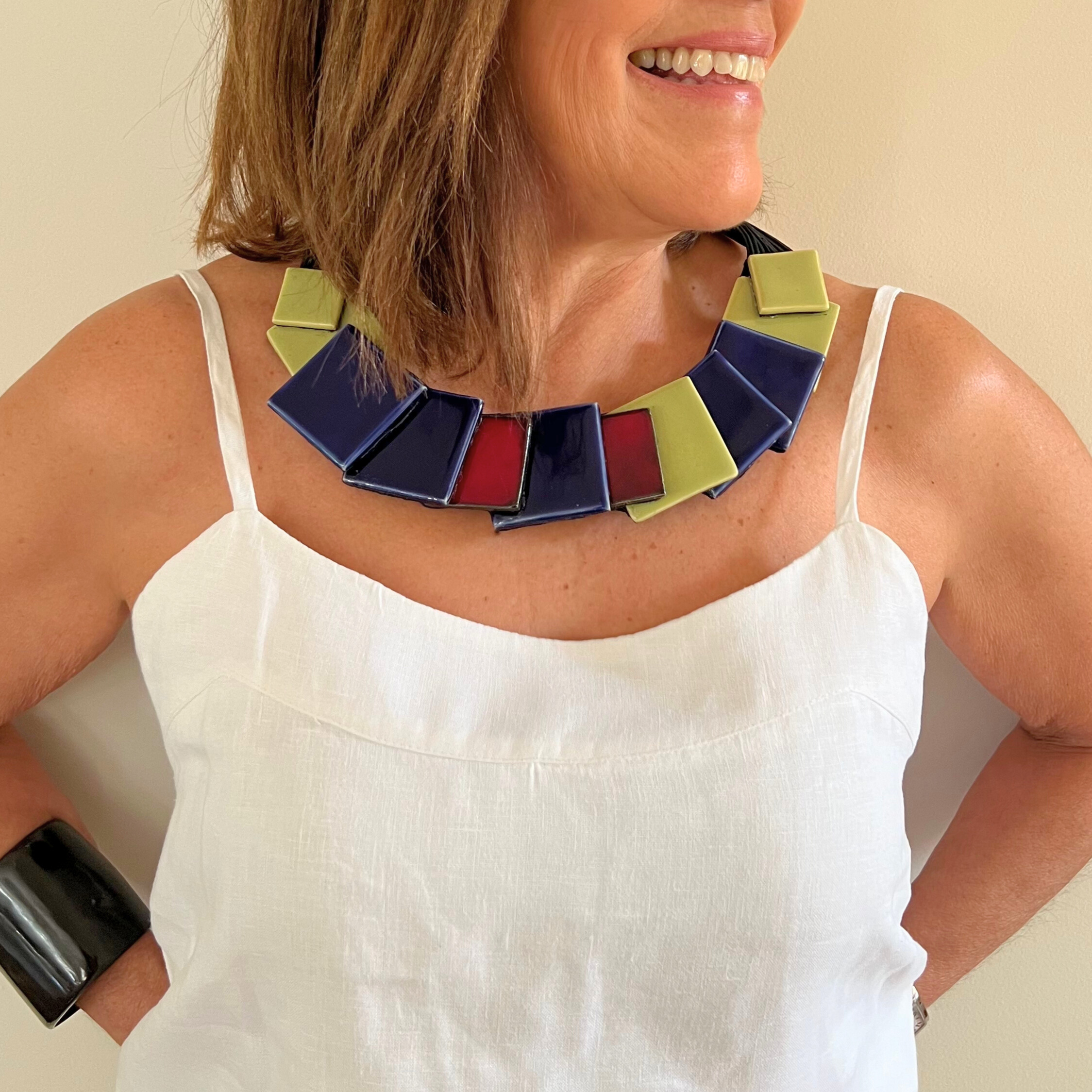 A coleção de colares em cerâmica é uma experiência multicultural de Rosaly Rezende, designer de acessórios femininos e peças decorativas. O resultado do olhar aguçado da artista que absorve a ousadia das ruas ao redor do mundo para imprimir em suas peças uma explosão de cores e formas. Materiais não nobres são trabalhados e combinados com sofisticação em peças artesanais e únicas. Força e personalidade definem a arte contemporânea de Rosaly Rezende. Permita-se!