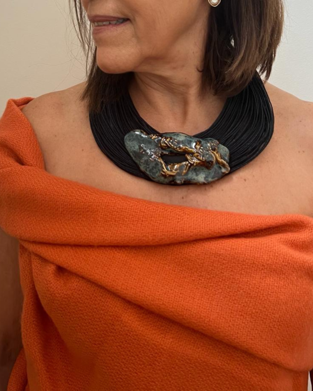A coleção de colares em cerâmica é uma experiência multicultural de Rosaly Rezende, designer de acessórios femininos e peças decorativas. O resultado do olhar aguçado da artista que absorve a ousadia das ruas ao redor do mundo para imprimir em suas peças uma explosão de cores e formas. Materiais não nobres são trabalhados e combinados com sofisticação em peças artesanais e únicas. Força e personalidade definem a arte contemporânea de Rosaly Rezende. Permita-se!