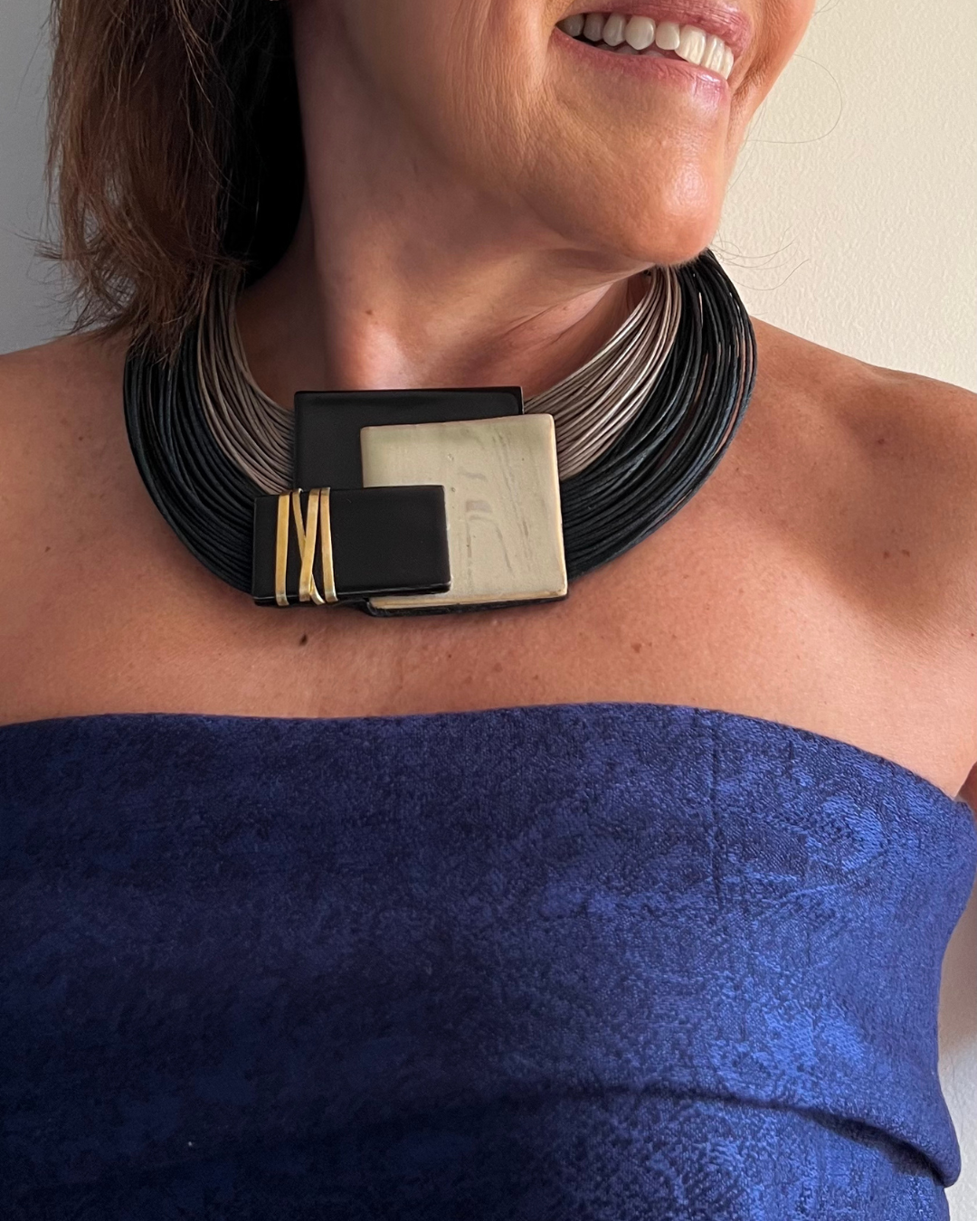 A coleção de colares em cerâmica é uma experiência multicultural de Rosaly Rezende, designer de acessórios femininos e peças decorativas. O resultado do olhar aguçado da artista que absorve a ousadia das ruas ao redor do mundo para imprimir em suas peças uma explosão de cores e formas. Materiais não nobres são trabalhados e combinados com sofisticação em peças artesanais e únicas. Força e personalidade definem a arte contemporânea de Rosaly Rezende. Permita-se!