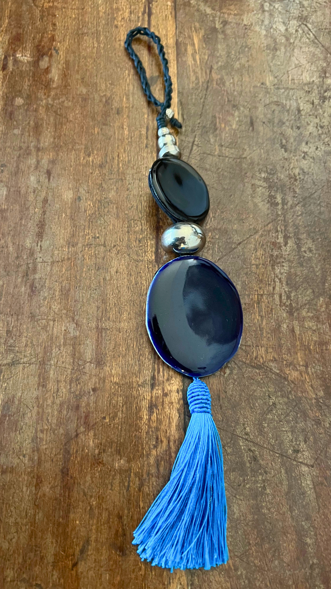 Materiais: Cerâmica, metais, fios de algodão encerado, pingente em fios de seda.